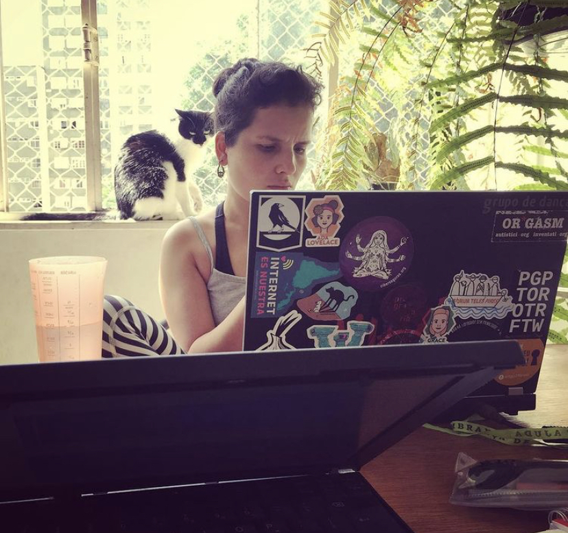 Atualmente sou Coordenadora de Projetos no programa de trocas de metodologias feministas para tecnologia (FTX) da organização sem fins lucrativos APC, e pesquisadora do grupo Tech for Forests.